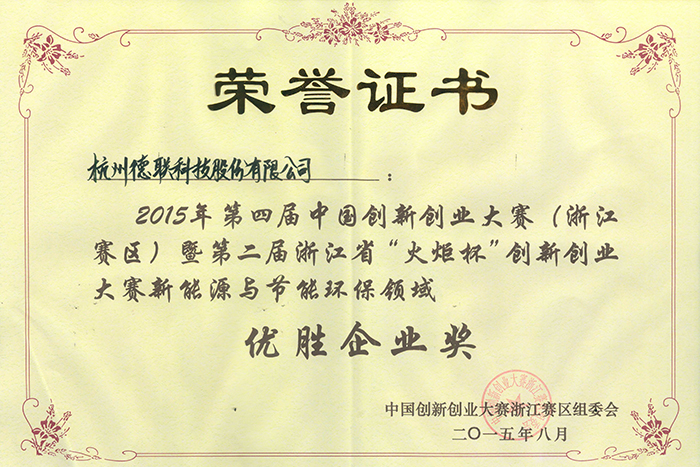 4.榮獲2015年第四屆中國創(chuàng)新創(chuàng)業(yè)大賽新能源及節(jié)能環(huán)保行業(yè)企業(yè)組第三名