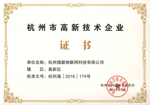 喜訊:2016 年8 月2 日,2016年杭州市第一批市級(jí)高新技術(shù)企業(yè)認(rèn)定公示,我公司旗下子公司杭州德聯(lián)物聯(lián)網(wǎng)科技有限公司被認(rèn)定為杭州市高新技術(shù)企業(yè)。 同時(shí),于2016年8月10日,順利通過雛鷹企業(yè)績效考核。
