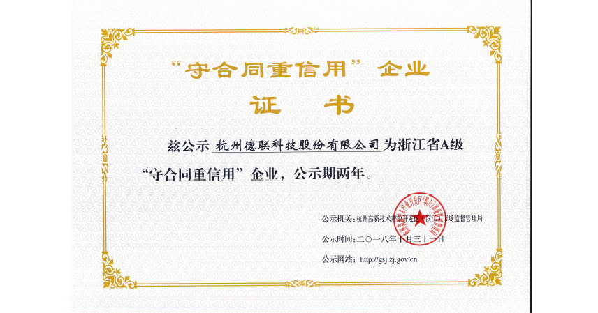 德聯(lián)科技獲“守合同重信用”企業(yè)證書(shū)